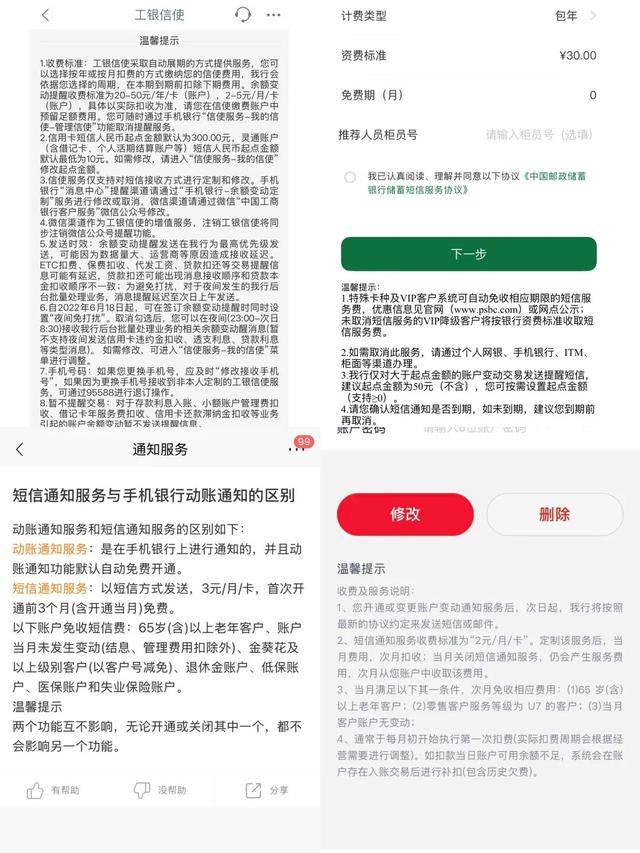 温馨提示:个别银行动账短信服务通知并非自动取消,如果市民接收该服务,可能需要支付每月几元甚至几十元的费用,长年累月下来也是一笔不小的开支。