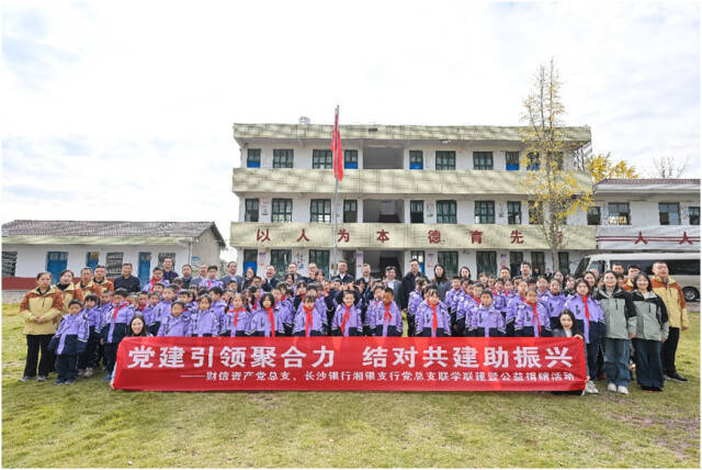 近日,湖南省财信资产管理有限公司(简称“财信资产”)与长沙银行湘银支行联学联建,来到邵阳市洞口县花古街道跃龙村苗竹小学,联合开展公益捐赠活动。双方为孩子们送上校服、书籍、音响设备等“冬日暖心礼”,并带来两场干货满满的公益课程。