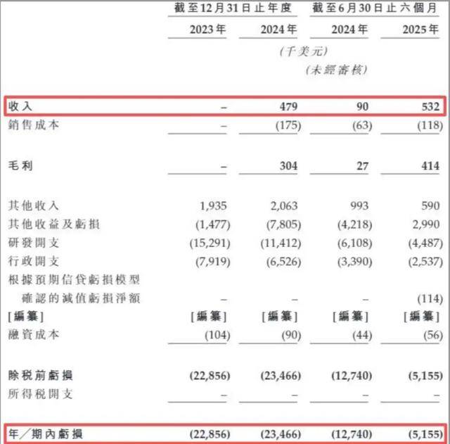 翻开安序源科技的财务数据,一系列数字揭示出创新型医疗器械企业面临的现实困境。2023年、2024年及2025年上半年,公司收入分别为0、47.9万美元和53.2万美元,而同期亏损却高达2285.6万美元、2346.6万美元及515.5万美元。这意味着,在过去两年半的时间里,安序源科技累计亏损已超过5000万美元。
