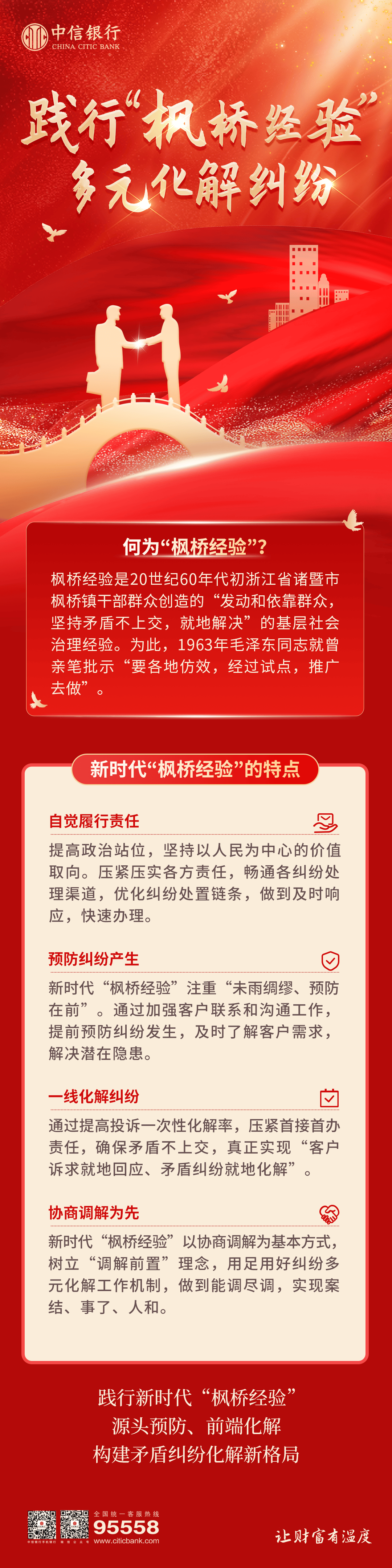 中信银行:践行“枫桥经验” 多元化解纠纷