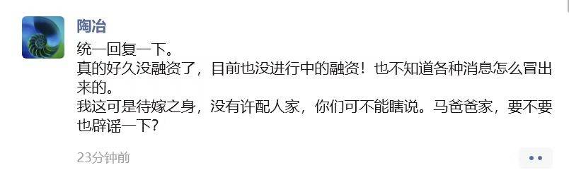 拓竹科技创始人陶冶也在朋友圈进行回应称:“真的好久没融资了,目前也没进行中的融资!也不知道各种消息怎么冒出来的。”