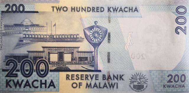 这是马拉维200克瓦查纸币背面的马拉维议会大厦图案。