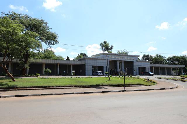 这是2025年4月29日在马拉维首都利隆圭市区拍摄的马拉维议会大厦建筑。