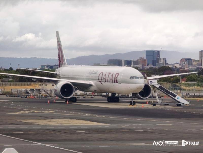 正在进行地面调试检测的一架卡塔尔航空客机。