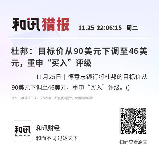 11月25日|德意志银行将杜邦的目标价从90美元下调至46美元,重申“买入”评级。