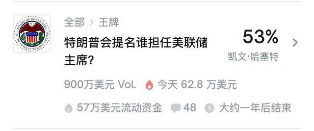 市场密切关注美联储主席人选动向,白宫首席经济顾问哈塞特(Kevin Hassett)成为最热门人选,截至11月26日,在Polymarket预测平台上,哈塞特担任下一任美联储主席的概率升至53%,其此前公开呼吁12月降息的政策立场进一步强化了市场的宽松预期。