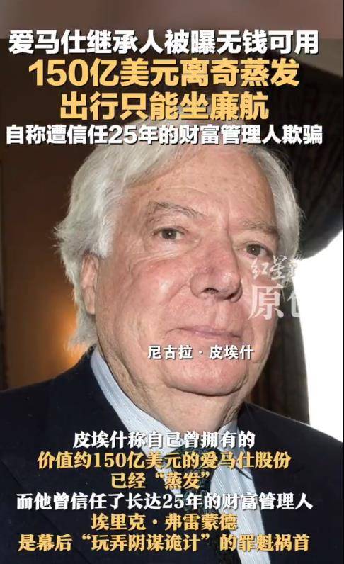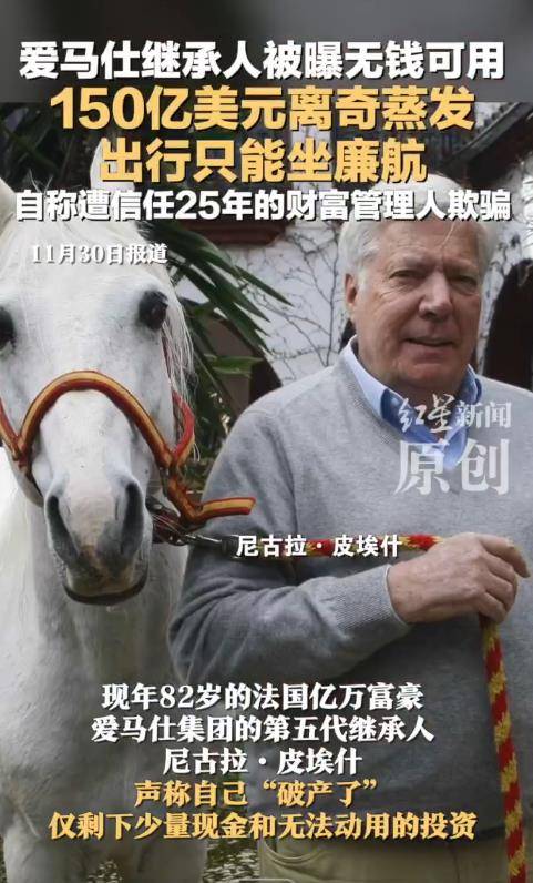 一则关于爱马仕第五代继承人尼古拉·皮埃什的消息震惊了全球财经与时尚圈,他高达150亿美元的爱马仕股份已“蒸发”殆尽,甚至沦落到出行乘坐廉价航空中间座位的地步。而这一切,都指向他信任多年的财富管理人埃里克·弗雷蒙德。随着弗雷蒙德今夏在瑞士阿尔卑斯山区离奇卧轨身亡,这场交织着巨额财富、亲密背叛与死亡阴影的谜案,被外界称为“本世纪最史诗般的金融传奇之一”。