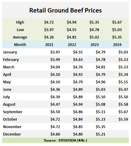 美国近年来的碎牛肉零售价格,图片来源:National Beef Wire