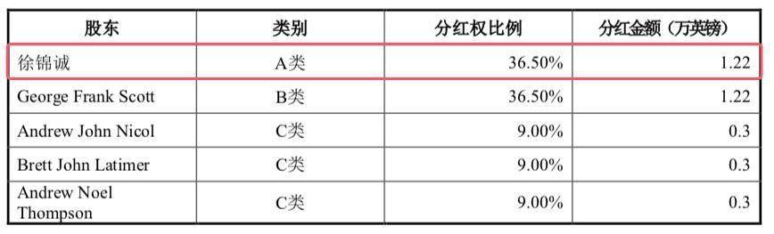 报告期内,Techfluid U.K. Ltd.未进行分红,报告期前,因 Techfluid U.K. Ltd.授予了三名C类股东股权激励,2021年通过分红补偿 C 类股东缴纳的税款,共计分红3.33 万元英镑,自此之后未进行过分红,其中,徐锦诚获分红1.22万英镑。