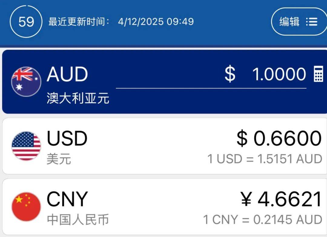 澳元兑人民币汇率:1:4.66