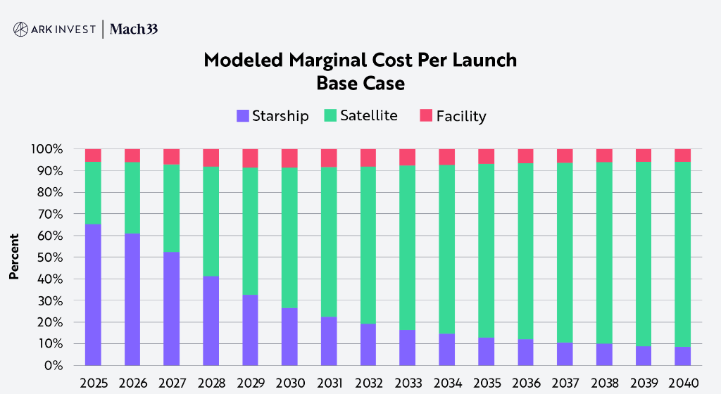 资料来源:ARK Investment Management LLC,2025年,基于SpaceX截至2025年5月29日的数据。本文仅提供信息,不应视为投资建议或购买、出售或持有任何特定证券的推荐。