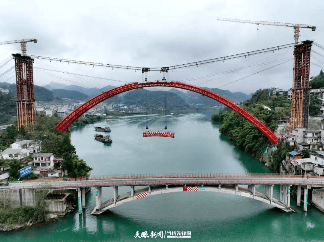 拆旧桥,建新桥。不久前,乌江三级航道贵州段重点配套项目——位于德江县境内的白果坨大桥主拱顺利合龙。