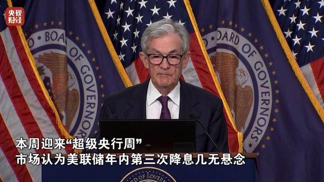 本周,全球金融市场迎来“超级央行周”,多国央行将陆续公布最新的利率决议。其中最受市场关注的是美联储本周的议息会议。因近期美国劳动力市场持续疲软,市场普遍预期美联储将在此前两次降息的基础上,再次下调利率25个基点。