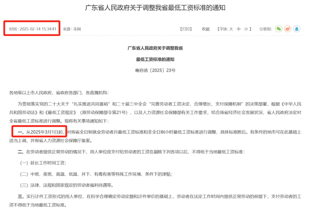 2️⃣最低工资调整执行时间:2025年3月1日起