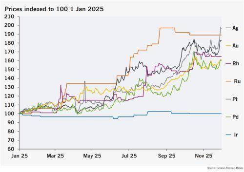 Heraeus认为,在各类贵金属中,黄金的价格基础最稳固,主要得益于央行持续净买入黄金。“若利率下行、通胀维持黏性且实际利率回落,将进一步巩固金价表现,”分析师写道。“虽然高企的价格压制了部分需求,但若金价继续上行,白银仍可能跟随。”