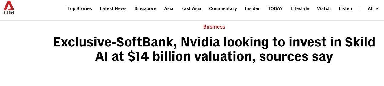 【环球网科技综合报道】12月9日消息,据cna援引路透社报道称,软银集团与英伟达正就一项对机器人基础模型公司 Skild AI 的重大投资展开深入谈判。此轮融资规模预计超过10亿美元,若顺利完成,将使 Skild AI 的估值达到约140亿美元,较其今年早些时候B轮融资时的47亿美元增长近两倍。