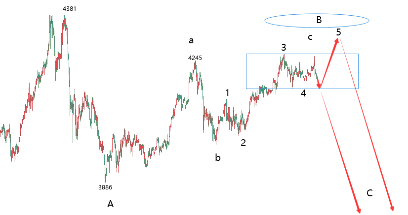 沪银(2606合约)一直强调看涨不猜顶,不能做空,等回落做多,本周预期的做多点位在13250,但实际没有走出预期点,所以错过了这波多头再涨的空间。暂时白银收盘在14200附近,虽然看涨,但现在已经无法再追多了,只能保持空仓观望。本周下方的支撑点有两个,一个是13650,一个是13250,如果能回落的话才能继续做多,没有回落宁可保持空仓观望。