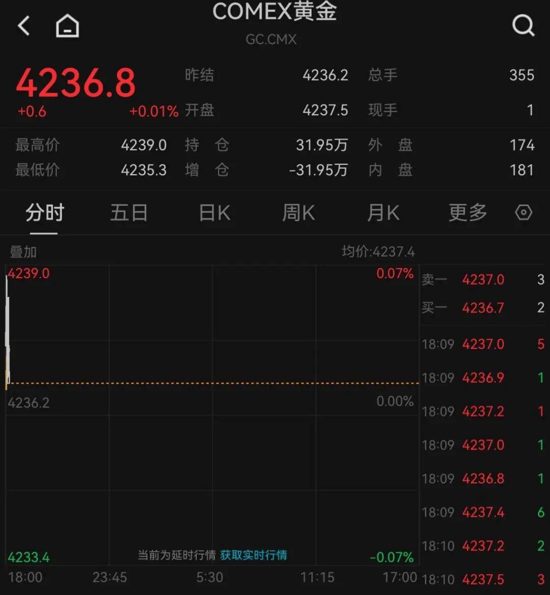 截至发稿,COMEX白银期货报61.025美元/盎司,首次达到60美元/盎司;COMEX黄金期货指数报4236.8美元/盎司,处于近期高位。