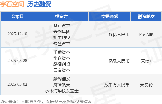 证券之星消息,根据天眼查APP于12月10日公布的信息整理,北京宇石空间航天科技有限公司Pre-A轮融资,融资额超亿人民币,参与投资的机构包括基石资本,兴湘集团,拓丰创投,银盈资本。