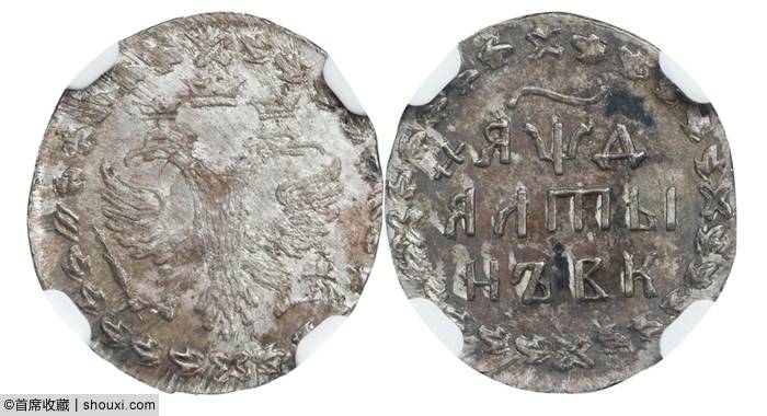 1701年俄罗斯银10登加,NGC-MS62,铸型规整,钱文立体,2800美元落槌;1702年俄罗斯银10登加,NGC-MS63,底光柔和,线条明晰,2800美元落槌;1704年俄罗斯银阿尔滕,NGC-MS64,包浆浓郁,痕迹自然,3000美元落槌,含佣约合人民币2.56万元成交;1752年俄罗斯1卢布,PCGS-AU53,色泽莹润,字口整洁,950美元落槌。