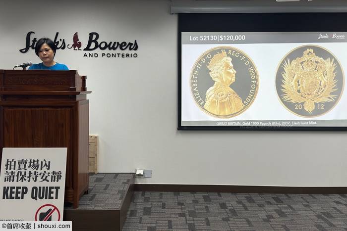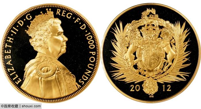 1908-B年英国贸易银元站洋壹圆,PCGS-MS64,光色柔润,包浆轻浅,850美元落槌;1911年英国索维林,PCGS-PR65,色泽纯正,底板如镜,3200美元落槌;2012年英国伊丽莎白二世像1000英镑金币,铸工精湛,压力十足,金光熠熠,浮雕感强烈,12万美元落槌,含佣约合人民币102.24万元成交。