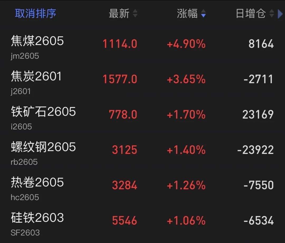 国内期货夜盘主力合约多数上涨,黑色系领涨。焦煤涨近5%,焦炭涨超3%,铁矿石、螺纹钢、热卷、硅铁均涨超1%。