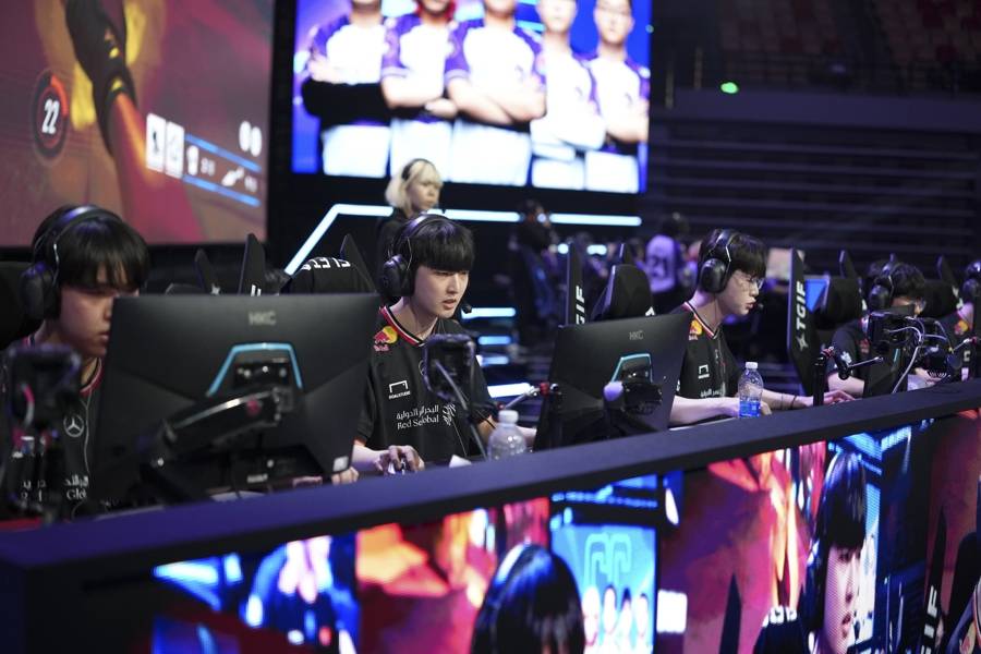 上海电竞大师赛守望先锋半决赛,t1战队正在比赛中。李铭珅 摄