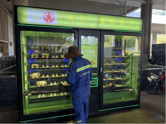 福田“食物银行”是一项以回收商超、酒店等来源的余量或临期安全食品为核心的公益项目。通过设置24小时智能柜,向特定群体免费发放食品,该项目在实现精准帮扶的同时,也有效减少了食品浪费与碳排放。