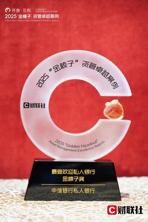 近日,由财联社主办的“2025上海全球金融·资管年会”在上海举行,现场揭晓第三届“金榛子”资管机构卓越案例征集活动结果。中信银行凭借在私人银行业务方面的出色表现,荣膺“最受欢迎私人银行金榛子奖”。