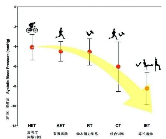 不同运动对收缩压(高压)的影响,研究截图