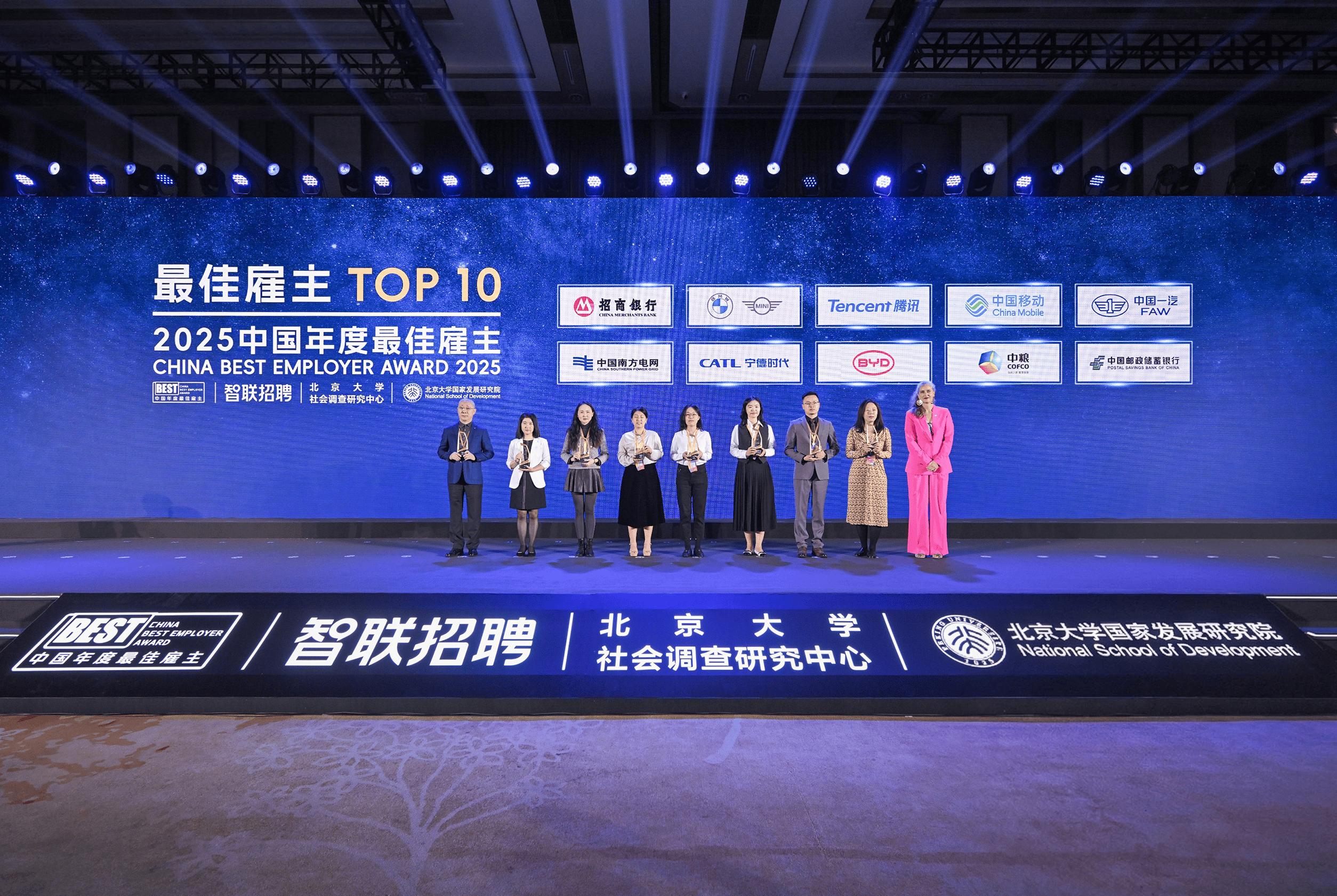 “中国年度最佳雇主”评选活动始于2005年,由智联招聘发起,北京大学社会调查研究中心和北京大学国家发展研究院联合举办,现已成为中国人力资本领域的权威风向标。招商银行连续15年入围中国年度最佳雇主10强,13年获评最佳雇主前3强,2024~2025年度蝉联榜首。作为中国雇主品牌标杆企业,招商银行雇主品牌不仅获得员工的认同、人才的青睐,也收获了社会各界的长期关注与高度认可。