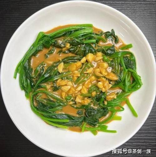 4. 将调好的酱汁倒入菠菜中,搅拌均匀即可。