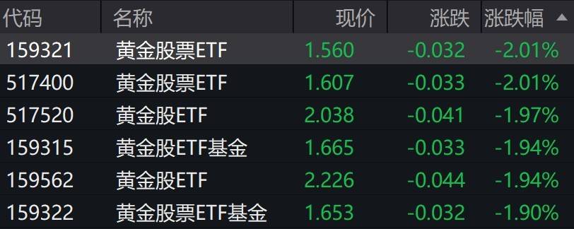 黄金概念股走低,中金黄金跌超3%,山东黄金、赤峰黄金、山金国际、湖南黄金跌超2%。