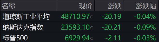 当地时间上周五,美股三大股指在清淡交易中徘徊于历史高点附近。截至收盘,道指跌0.04%,纳指跌0.09%,标普500指数跌0.03%,盘中创新高。