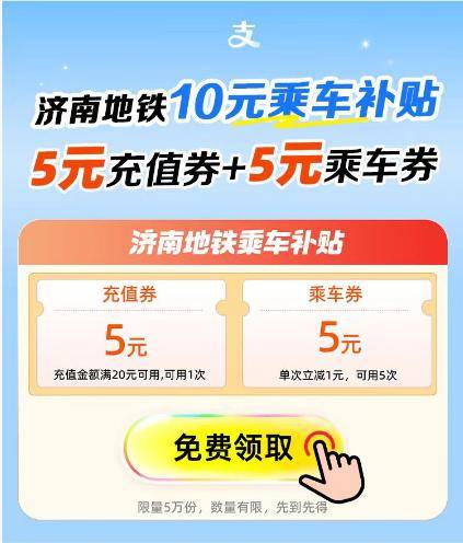 点击【立即领】进入活动页面,有机会免费领取10元济南地铁乘车补贴券包。