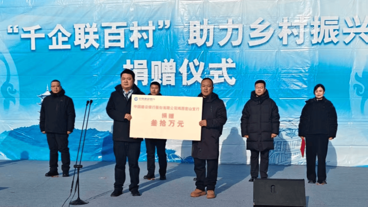 “千企联百村”助力乡村振兴捐赠仪式现场(建设银行密山支行供图)