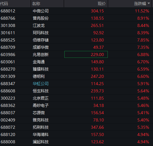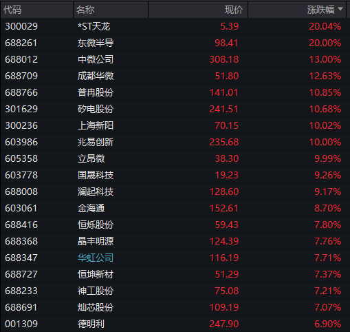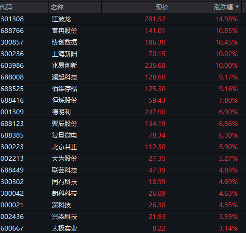 存储芯片方向领涨,东微半导、兆易创新等涨停。