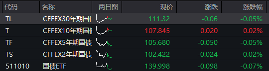 国债期货开盘,30年期主力合约涨0.24%,10年期主力合约涨0.09%,5年期主力合约涨0.06%,2年期主力合约涨0.01%。
