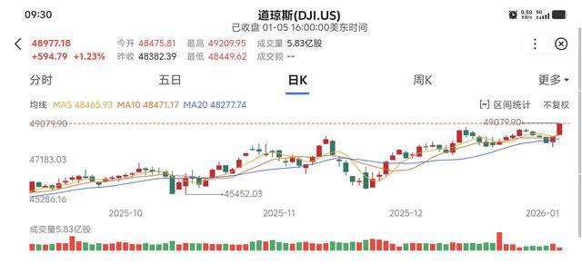 北京时间1月6日凌晨,美股三大指数集体收高,道指创出历史新高。