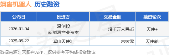 证券之星消息,根据天眼查APP于1月4日公布的信息整理,飒沓机器人科技(苏州)有限公司天使+融资,融资额超千万人民币,参与投资的机构包括深创投,新能源产业资本。