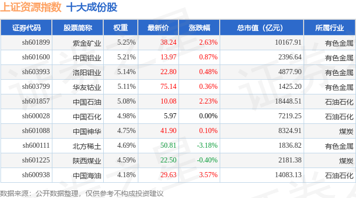 证券之星消息,1月13日,上证资源(000068)指数报收于4357.42点,涨0.23%,成交926.49亿元,换手率0.97%。当日该指数成份股中,上涨的有23家,白银有色以4.3%的涨幅领涨,下跌的有22家,西部超导以10.02%的跌幅领跌。