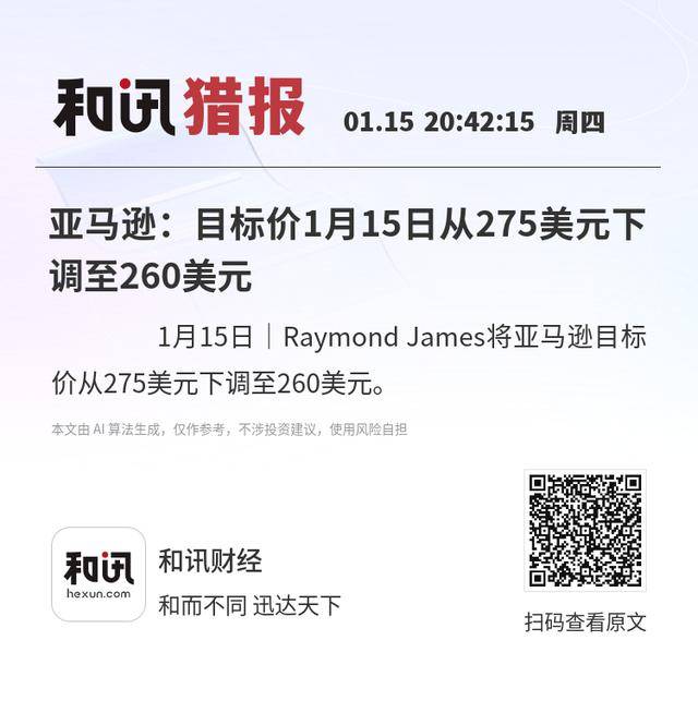 1月15日|Raymond James将亚马逊目标价从275美元下调至260美元。