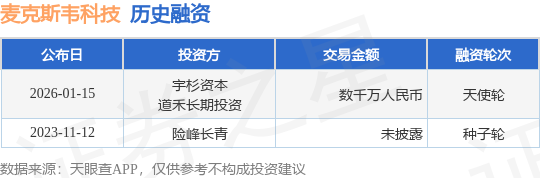 证券之星消息,根据天眼查APP于1月15日公布的信息整理,苏州麦克斯韦真空科技有限公司天使轮融资,融资额数千万人民币,参与投资的机构包括宇杉资本,道禾长期投资。
