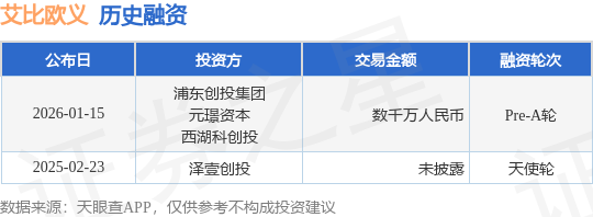 【投融资动态】艾比欧义Pre-A轮融资,融资额数千万人民币,投资方为浦东创投集团、元璟资本等