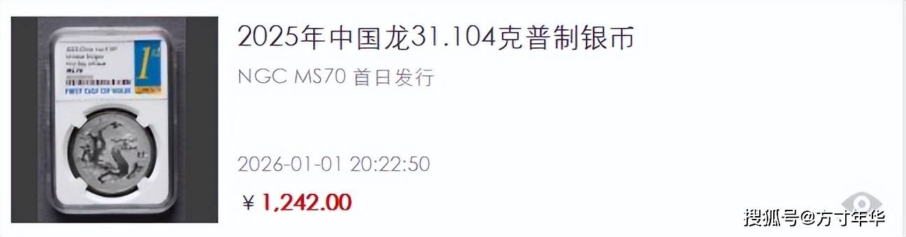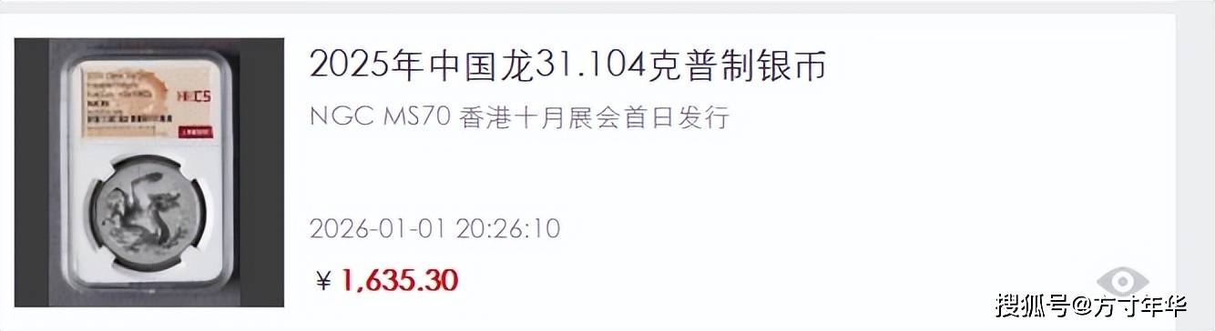 2025 版龙银币堪称 “理财黑马”,赵涌在线成交数据显示,NGC MS70 满分评级的智能卡版,单枚成交价最高达 1800.9 元,更有新加坡首日发行标签的评级币拍出 22000 元天价,开门号 00001 的封装版更是以 18 万元落槌,刷新龙银币成交纪录。