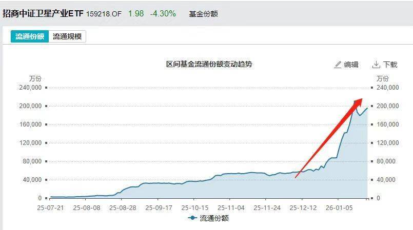 商业航天热度持续爆表,市场交投创下里程碑式纪录。数据显示,两融标的卫星产业ETF(159218)在2026年开年仅12个交易日内,累计成交额超149亿元,净流入近22亿,彰显资金关注度与市场流动性。