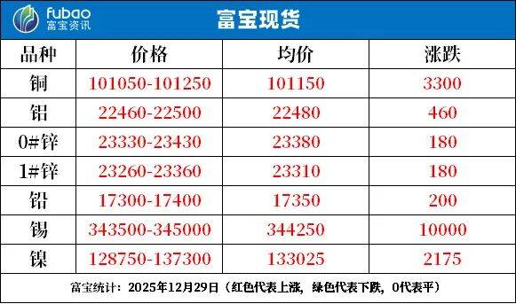 铜:今日国内现货铜主流成交101050-101250,均101150涨3300。年底持货商整体出货减少,但由于需求表现冷淡,升贴水高开低走,下游接货情绪低温,市场成交难度较大。短期情绪面逐渐降温,预计铜价冲高回落,现货参考97000-99000元。