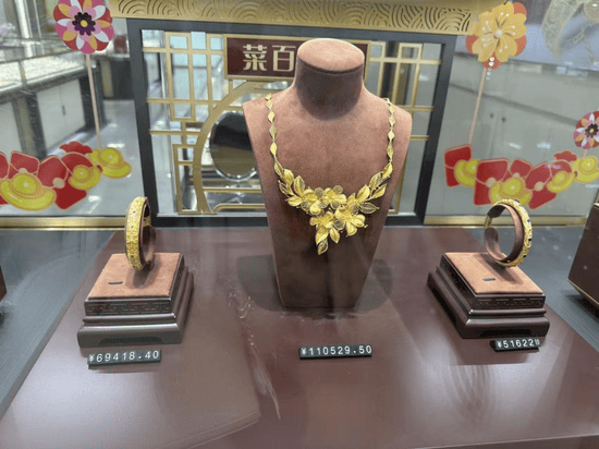 展柜里的大件黄金首饰 本报记者 董添/摄