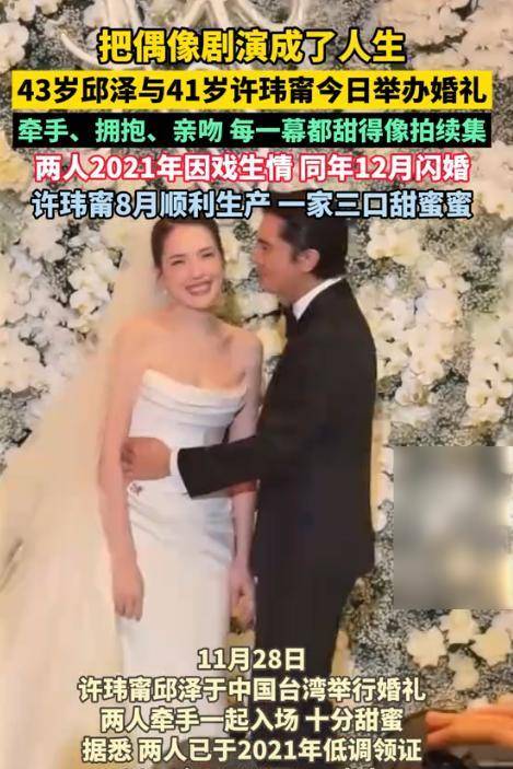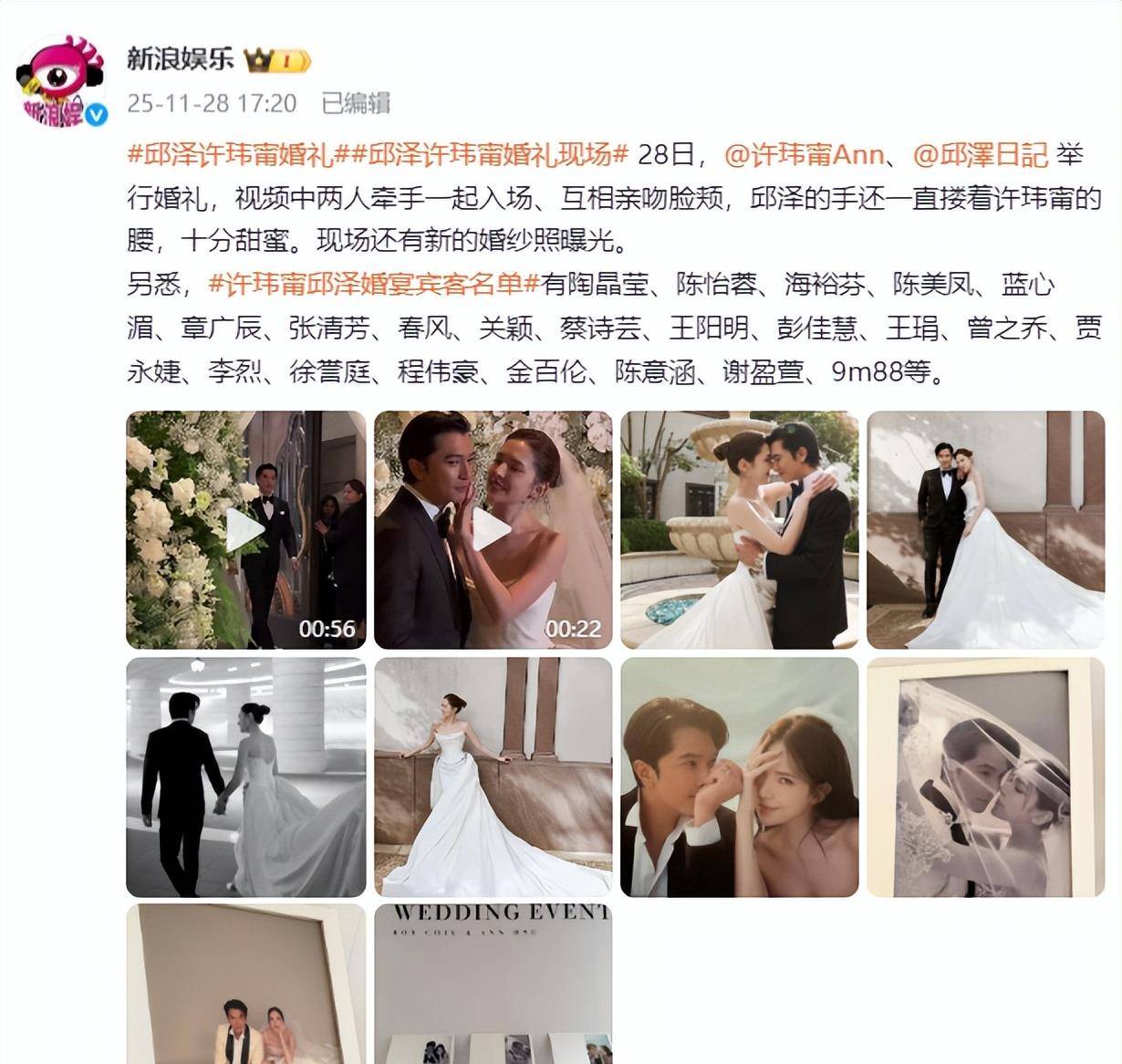 11月28日,结婚已四年的邱泽与许玮甯,在亲友簇拥下补办了婚礼仪式。