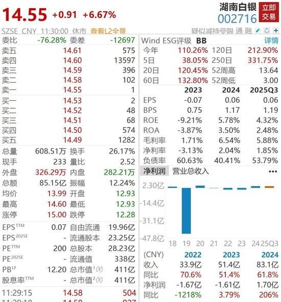 1月22日,截至午盘市场冲高回落,A股三大指数集体翻绿,贵金属概念冲高回落,西部黄金、晓程科技均跌超5%,赤峰黄金、山东黄金跌超4%。不过,湖南白银却继续逆势大涨,截至午盘涨幅超6%,年内涨幅超110%。